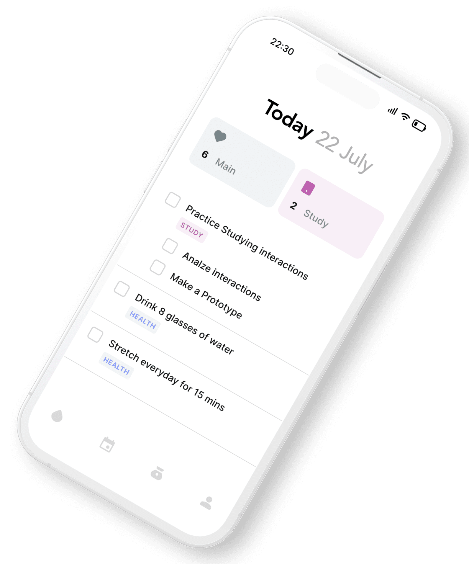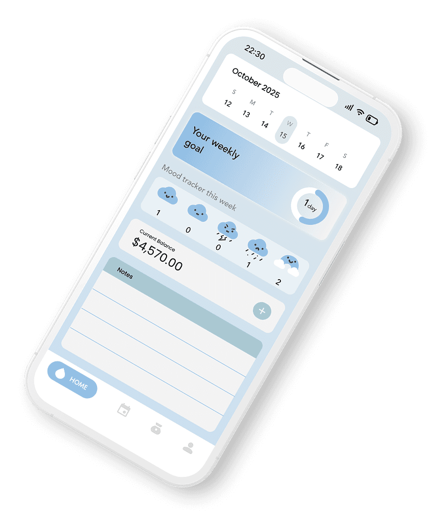 Design an all-in-one life management app that allows users to log their mood, daily notes, schedules, and expenses in one place, while visualizing patterns through simple charts and summaries.