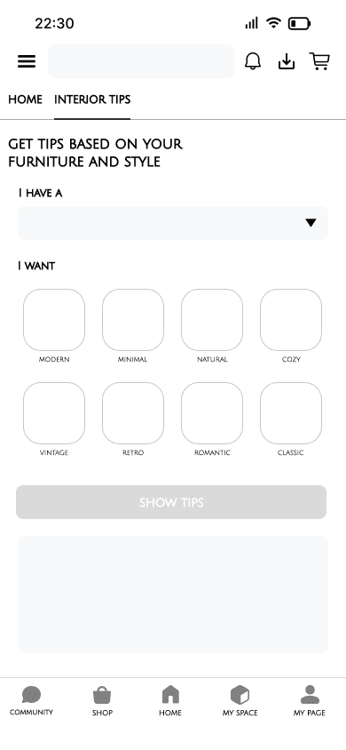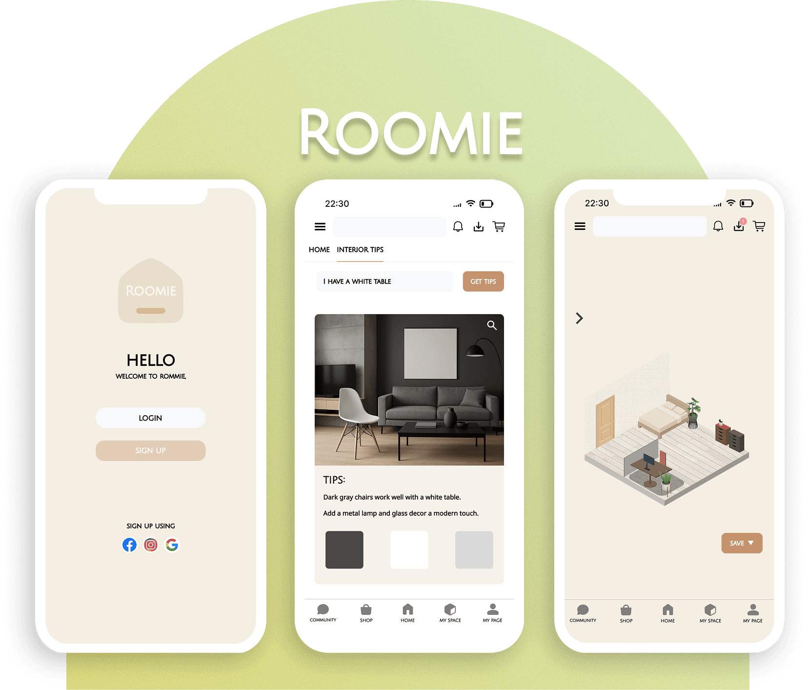 Roomie is an interior guide app designed for people in their 20s–30s.