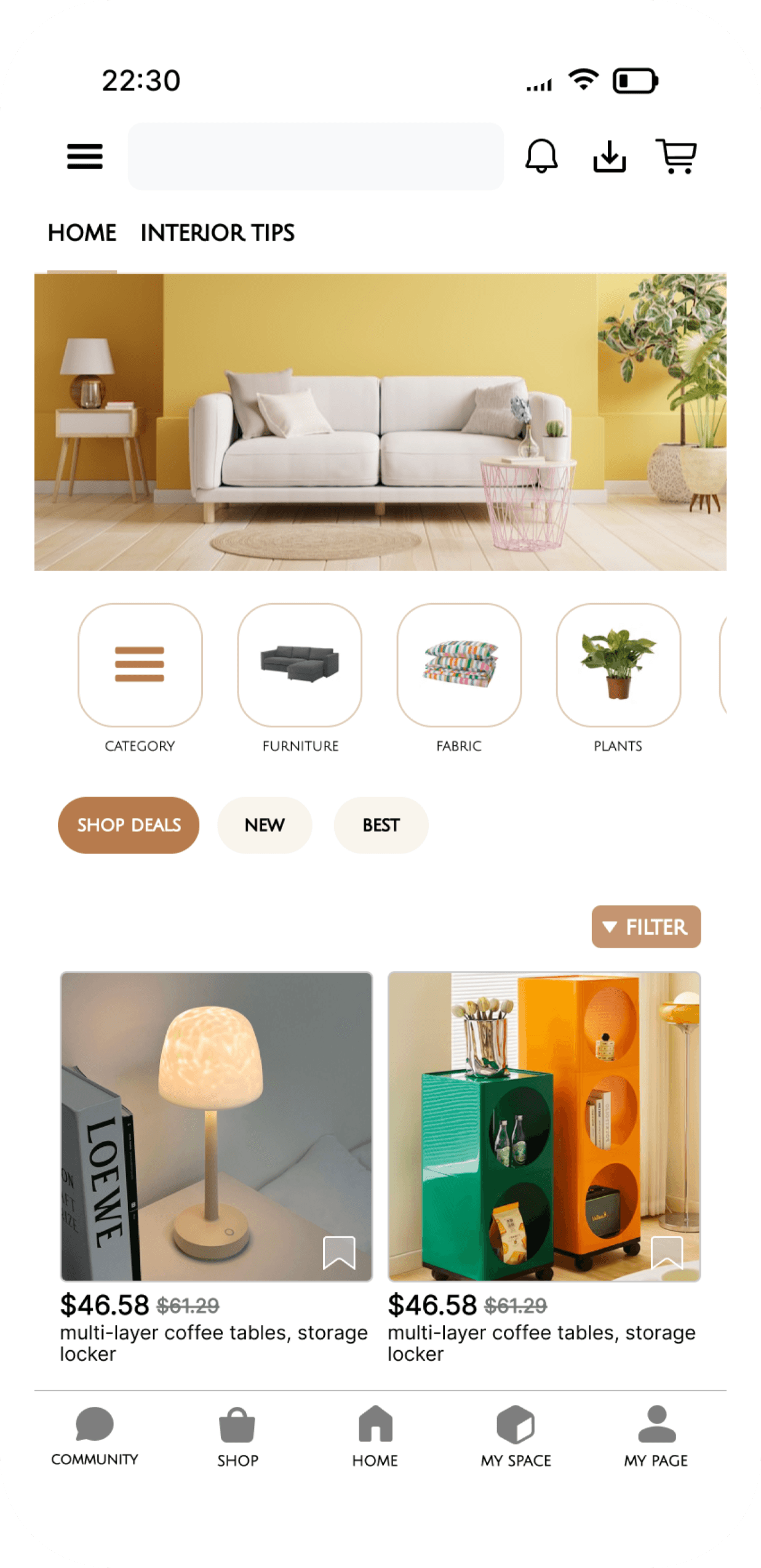 By combining visual-led categories with quick filters, users can effortlessly explore interior products while maintaining control over their selection criteria.